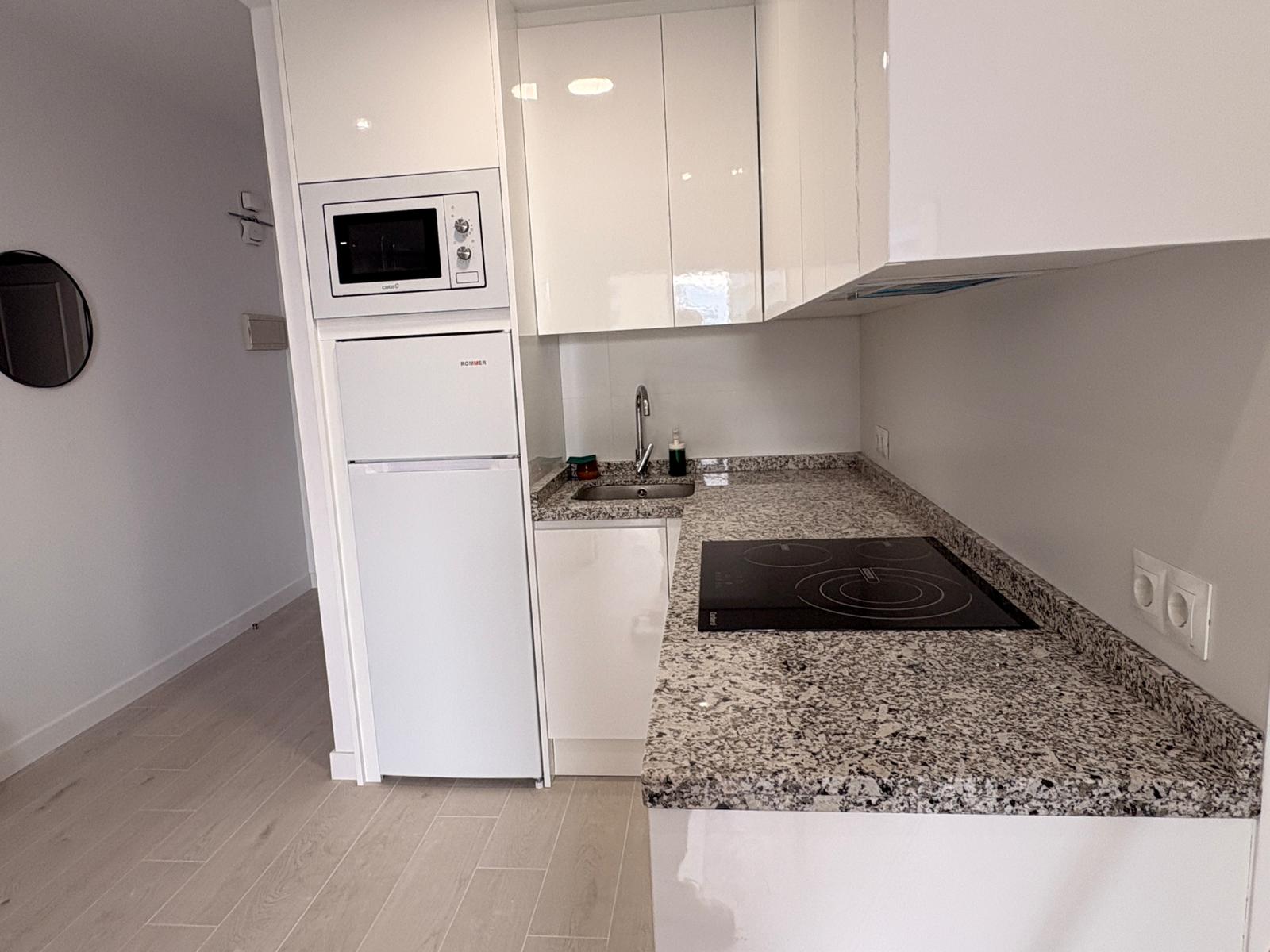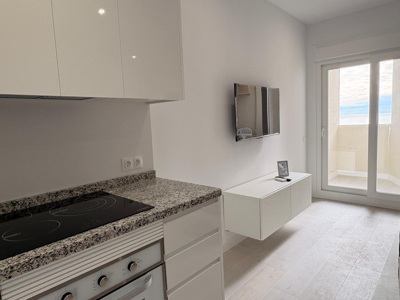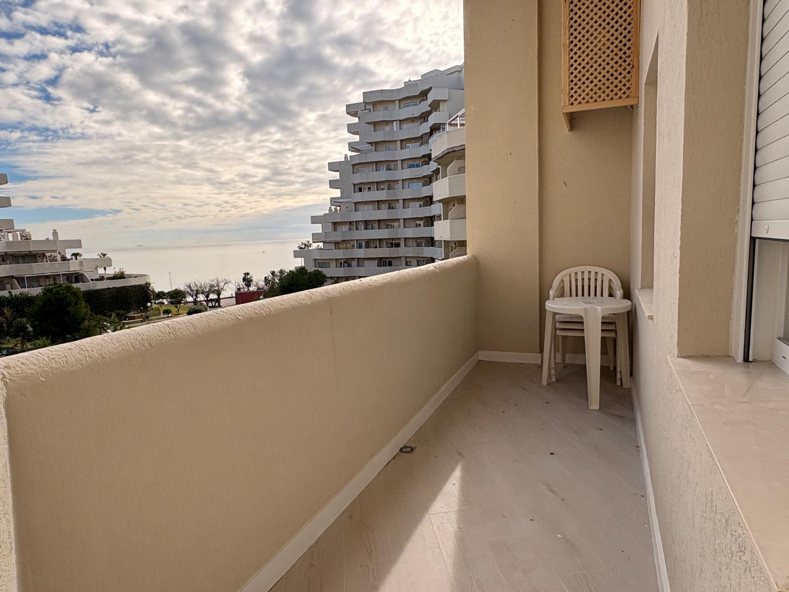 Fully renovated one-bedroom apartment located on the third floor of the BenalBeach building, facing south with views of tropical gardens and the sea from the terrace. It accommodates four people with a double bed, a double sofa bed in the living room, a TV, and air conditioning in the bedroom. The kitchen is equipped with a large refrigerator, four-burner stove, washing machine, oven, and microwave. The spacious bathroom has a shower.
