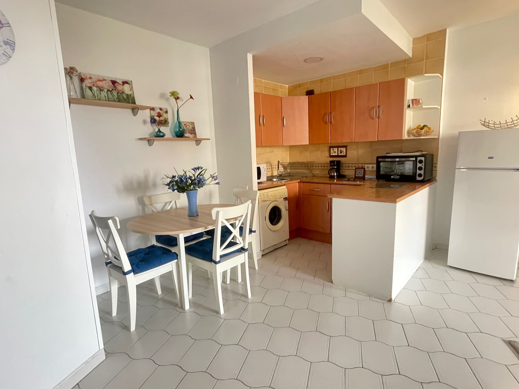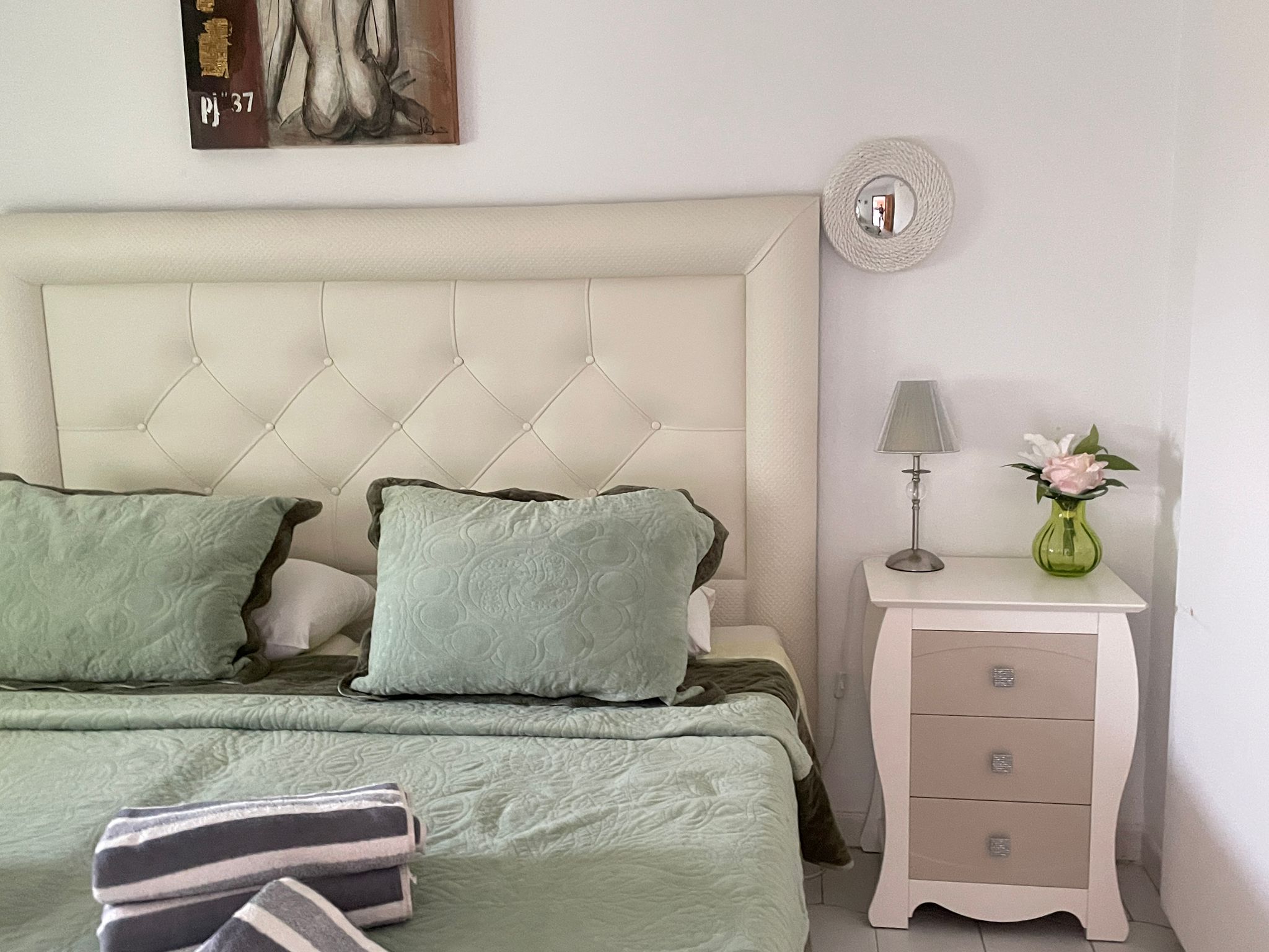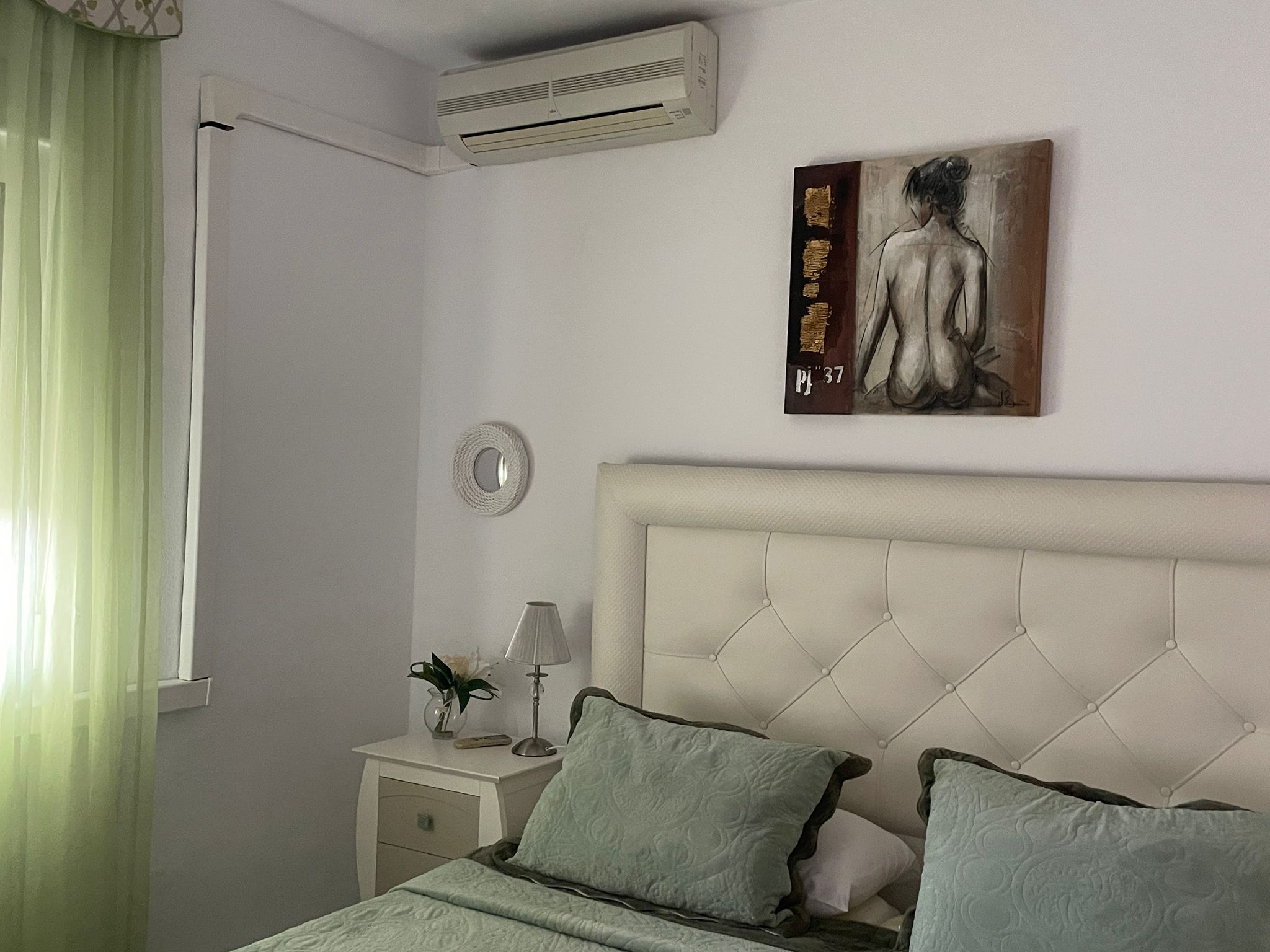 The apartment has a bedroom with two joined beds and dressing table, in the living room sofa bed, air conditioning and TV 32 ", kitchen with fully equipped American bar with ceramic hob with two fires and large refrigerator.