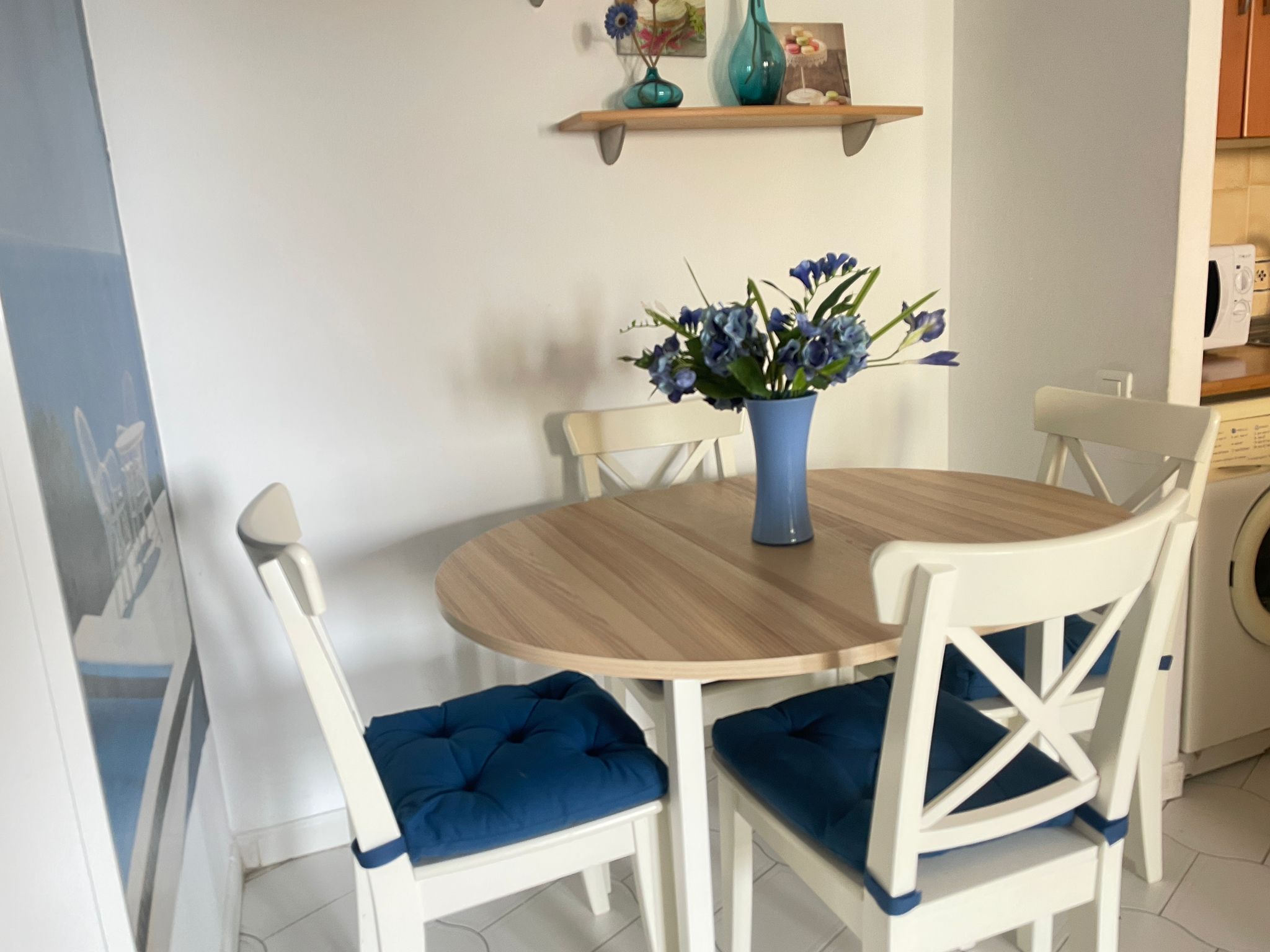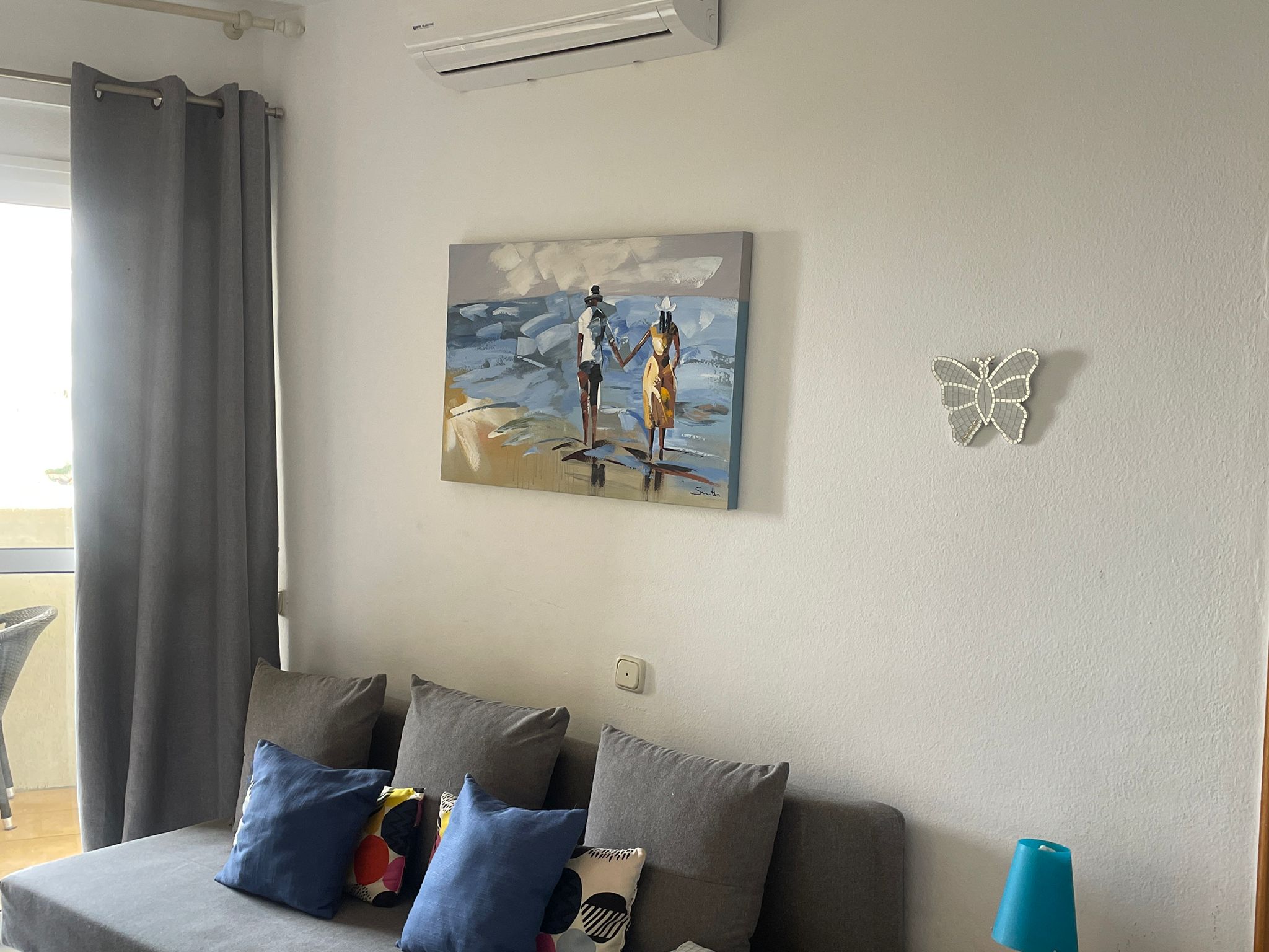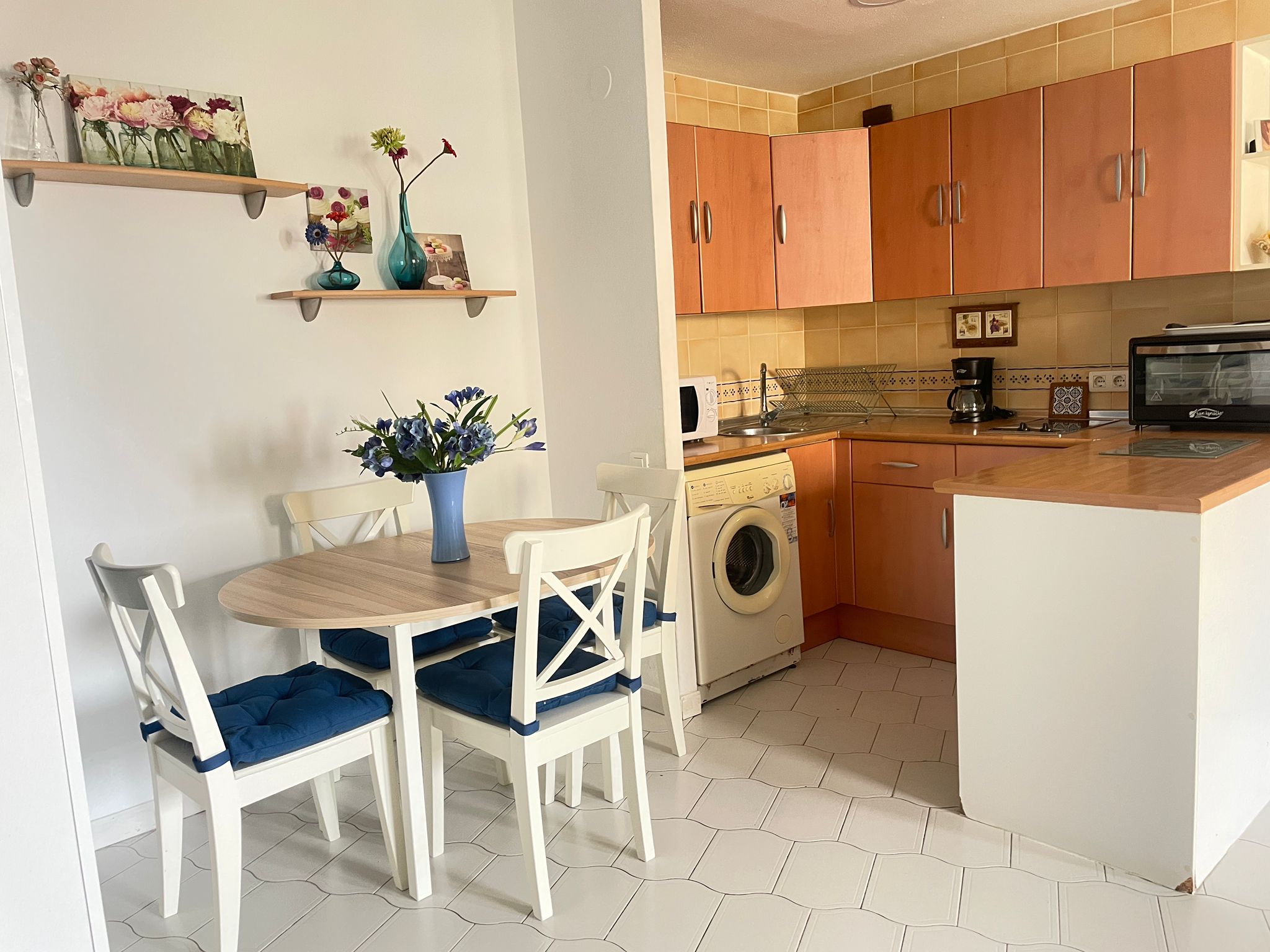 The apartment has a bedroom with two joined beds and dressing table, in the living room sofa bed, air conditioning and TV 32 ", kitchen with fully equipped American bar with ceramic hob with two fires and large refrigerator.