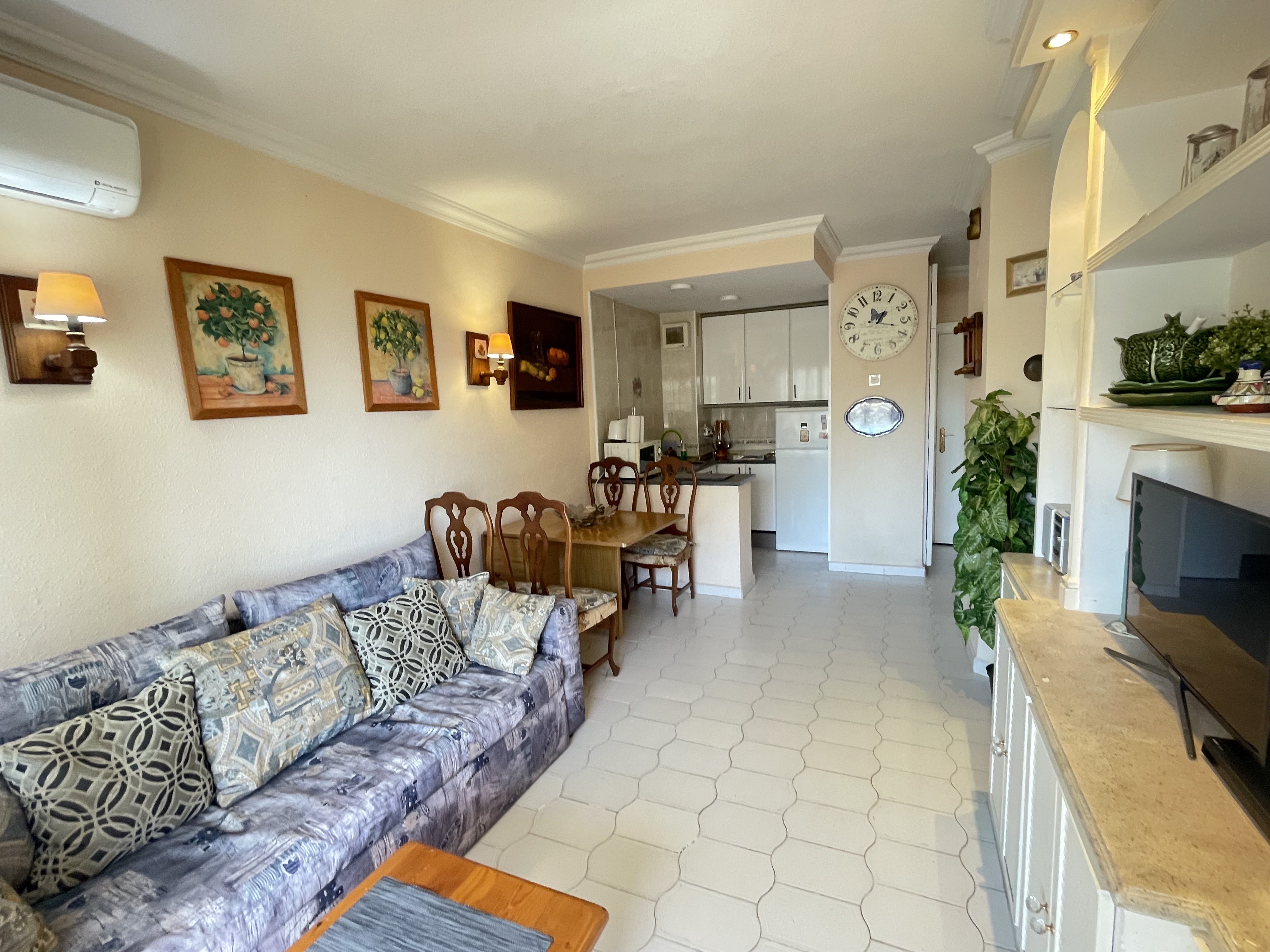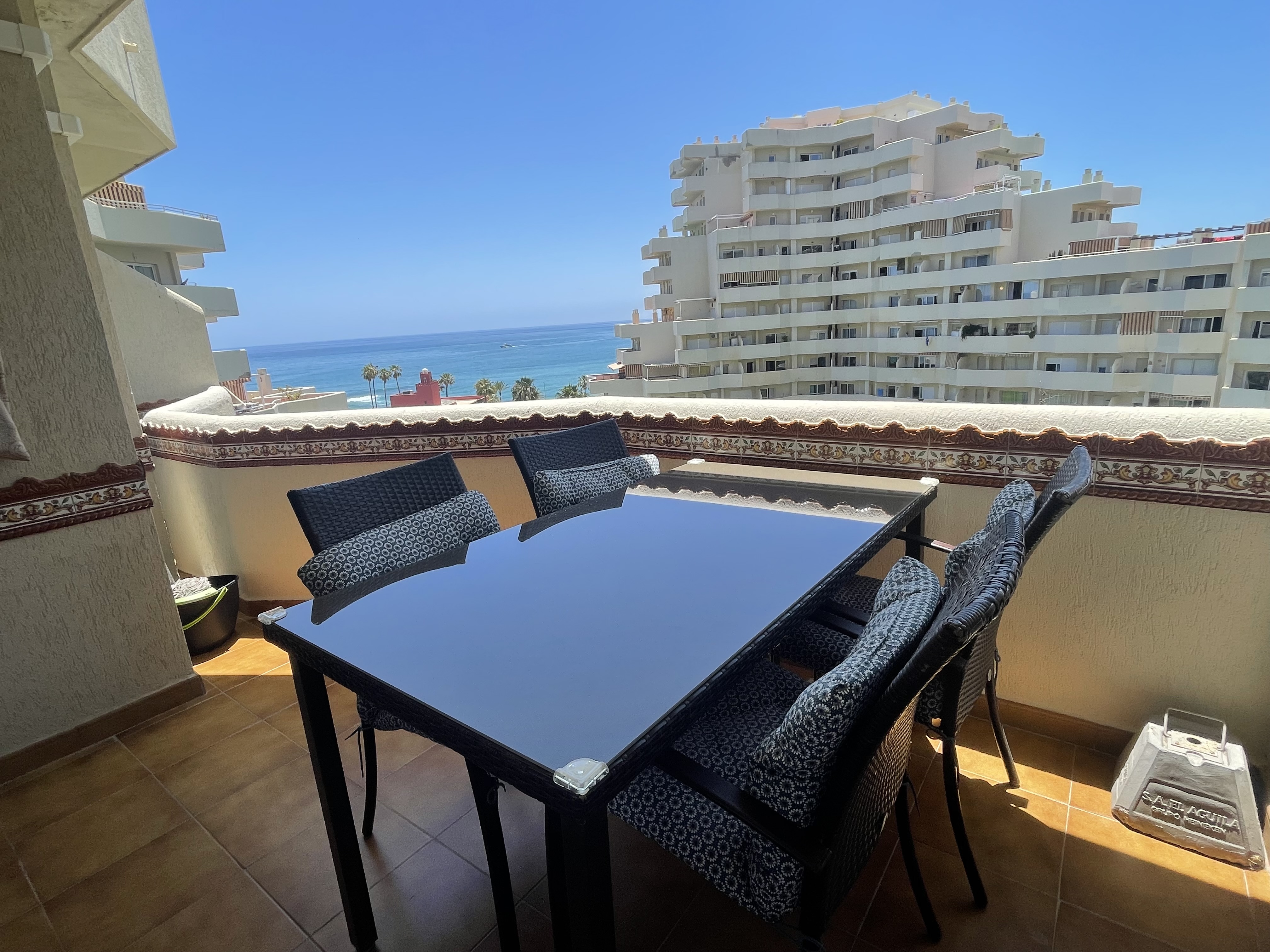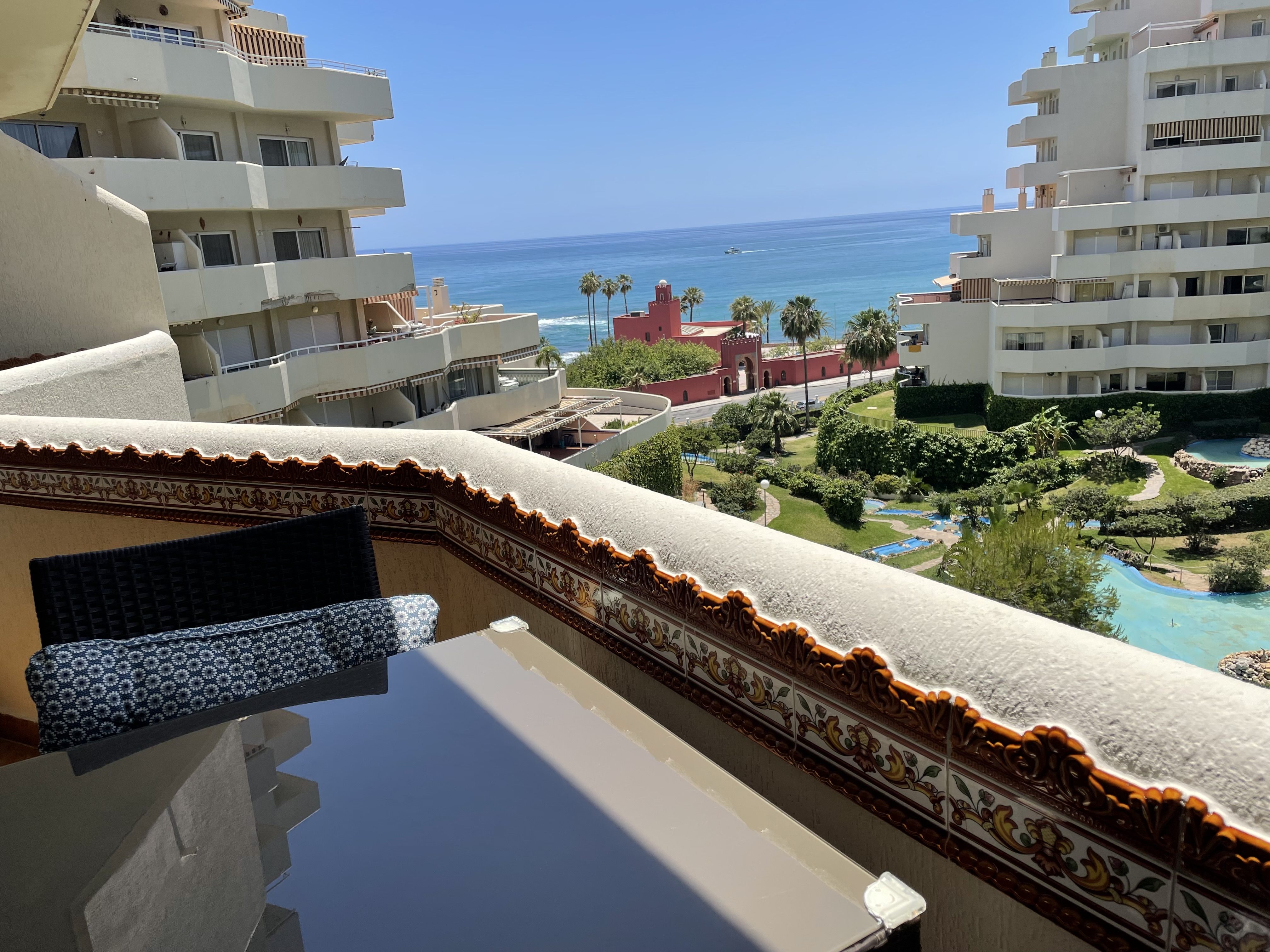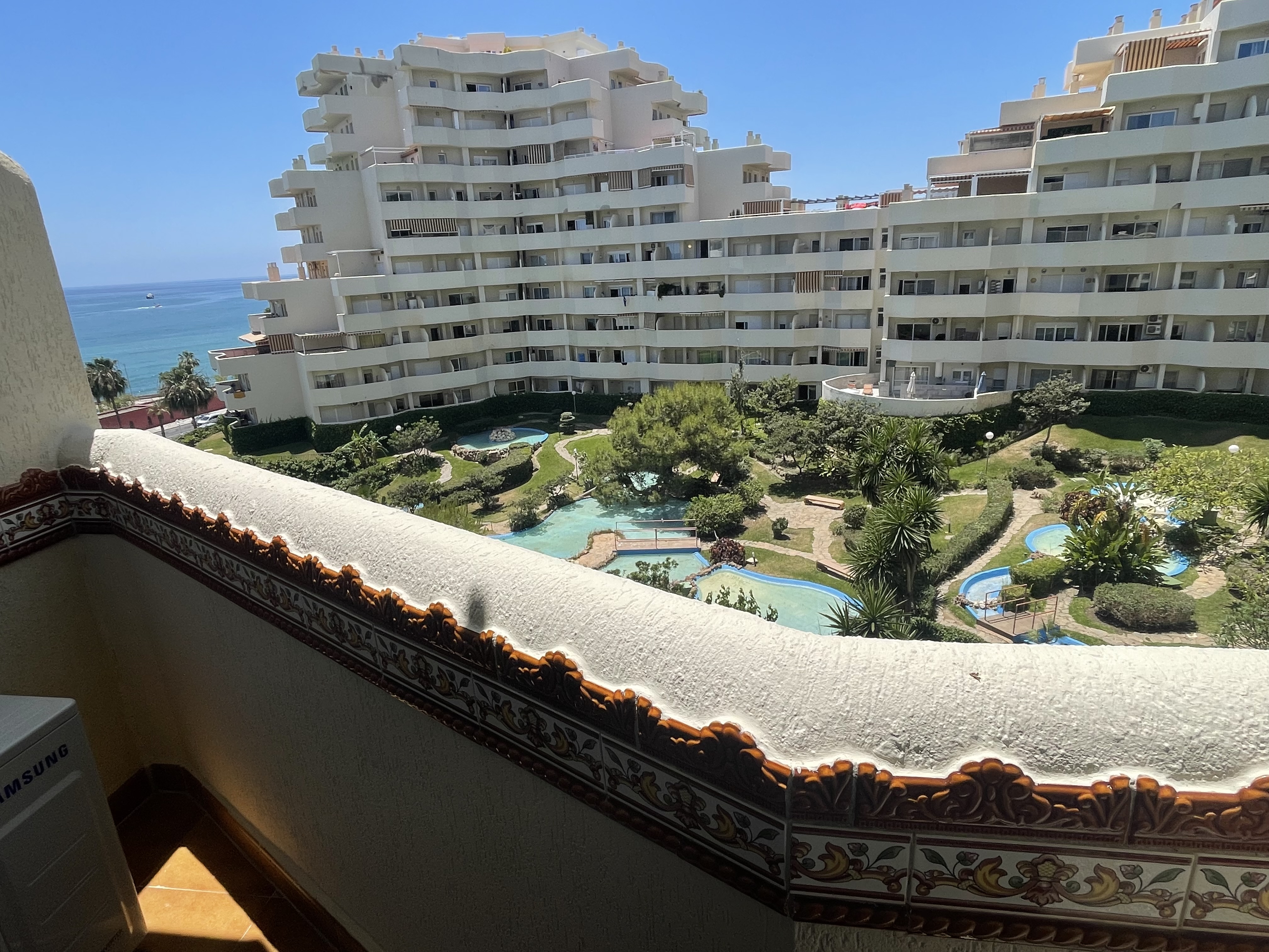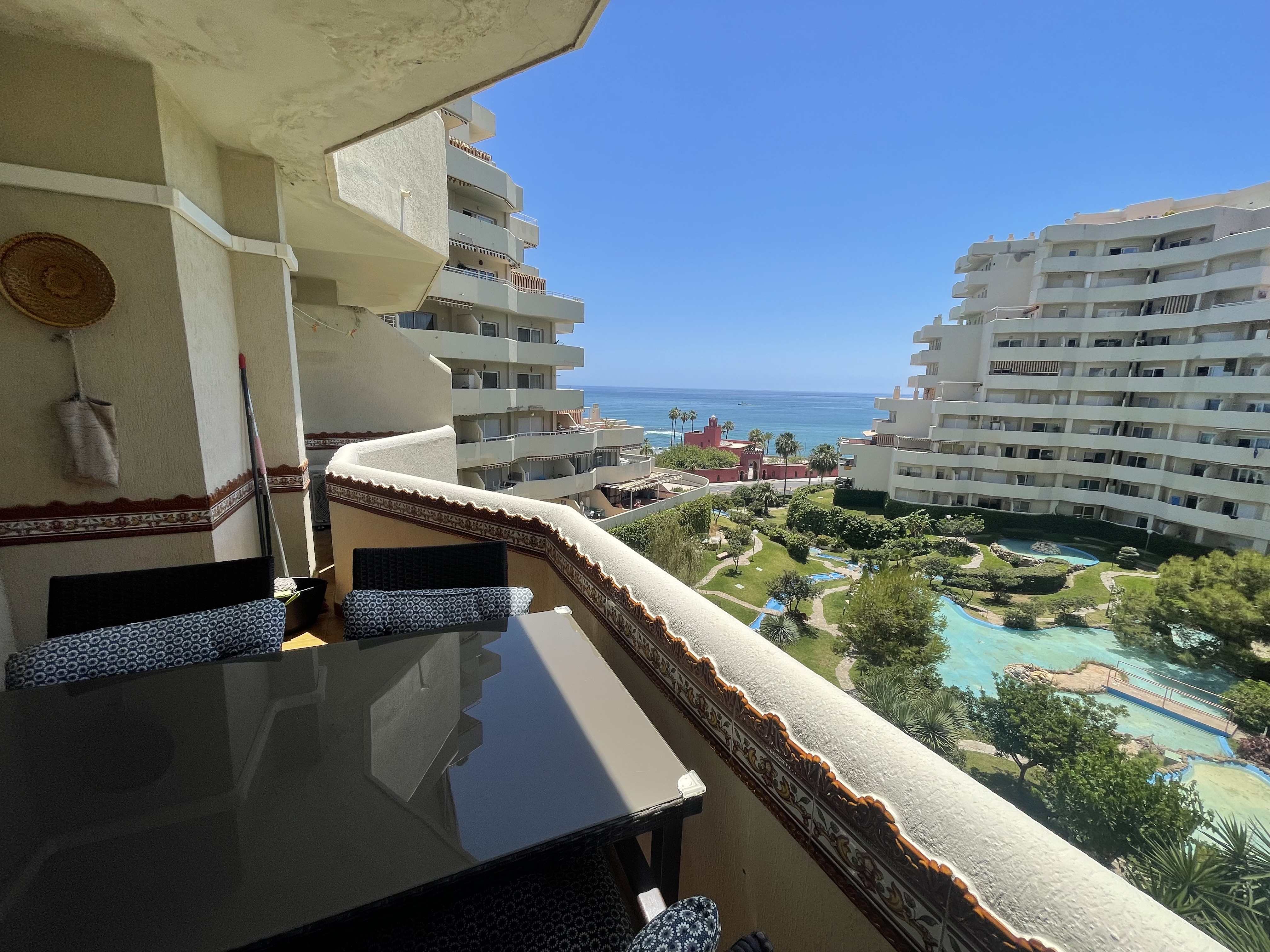 One bedroom apartment located on a fourth floor in the Benal Beach complex with west orientation, tropical gardens and sea views.