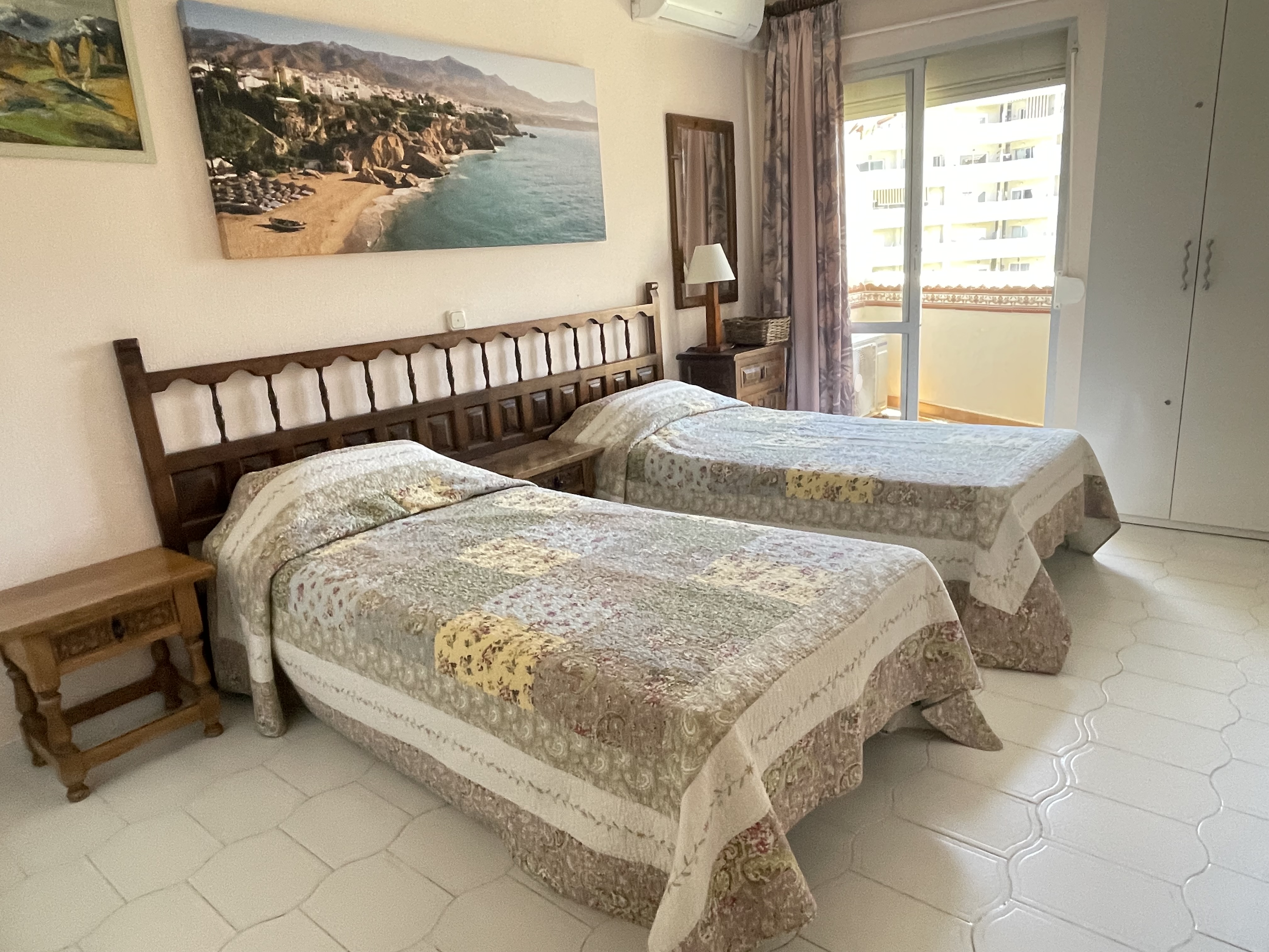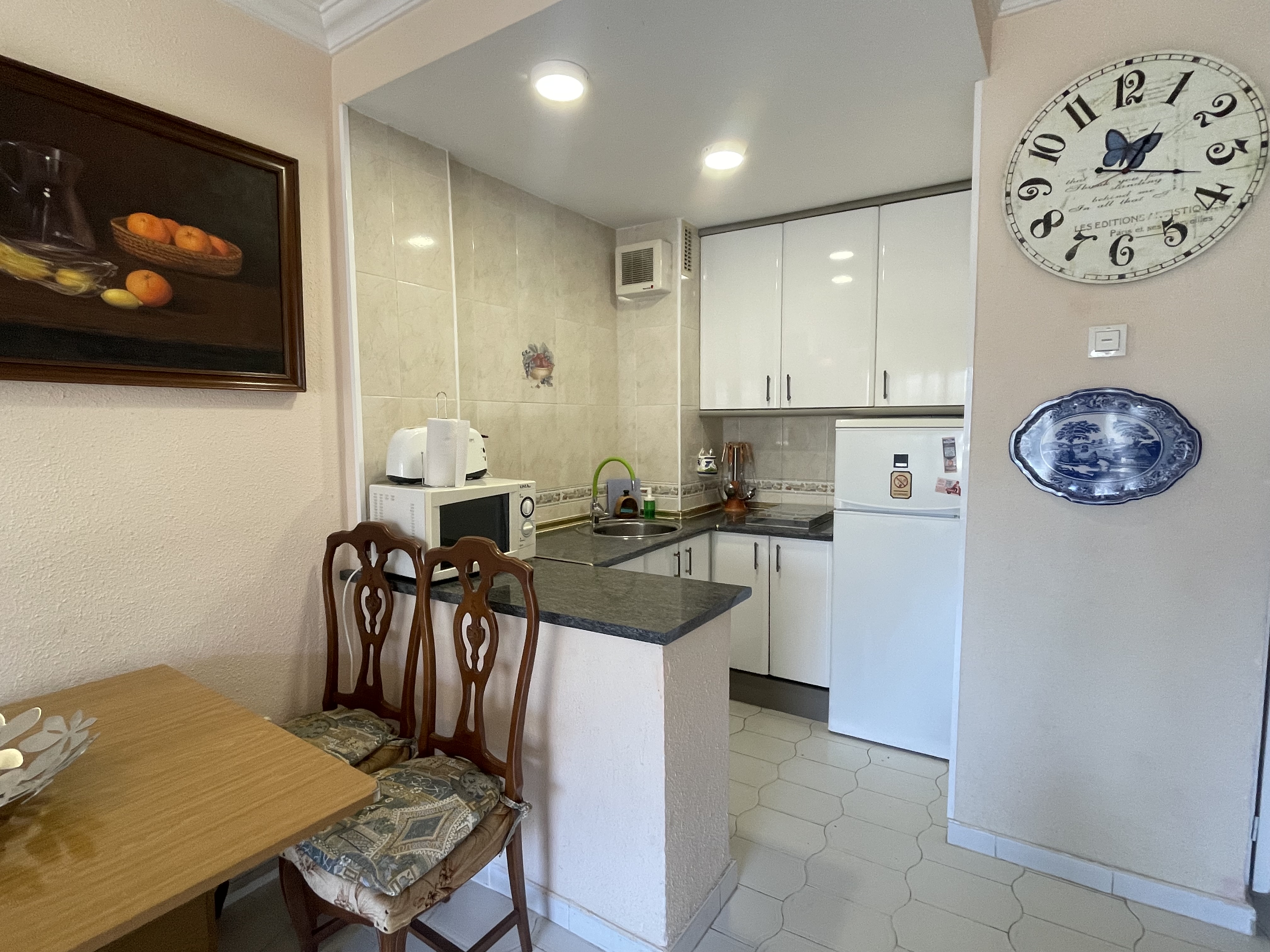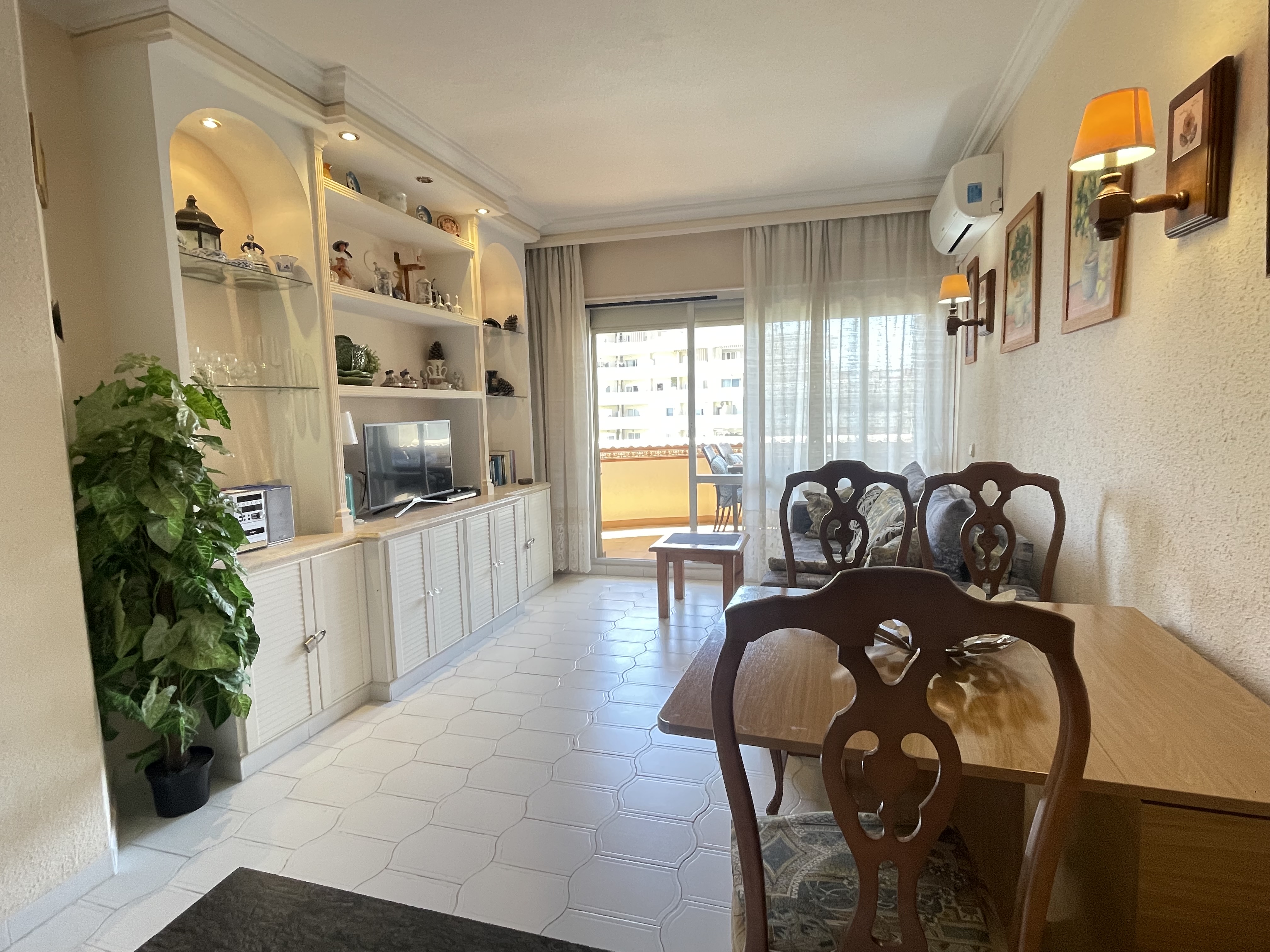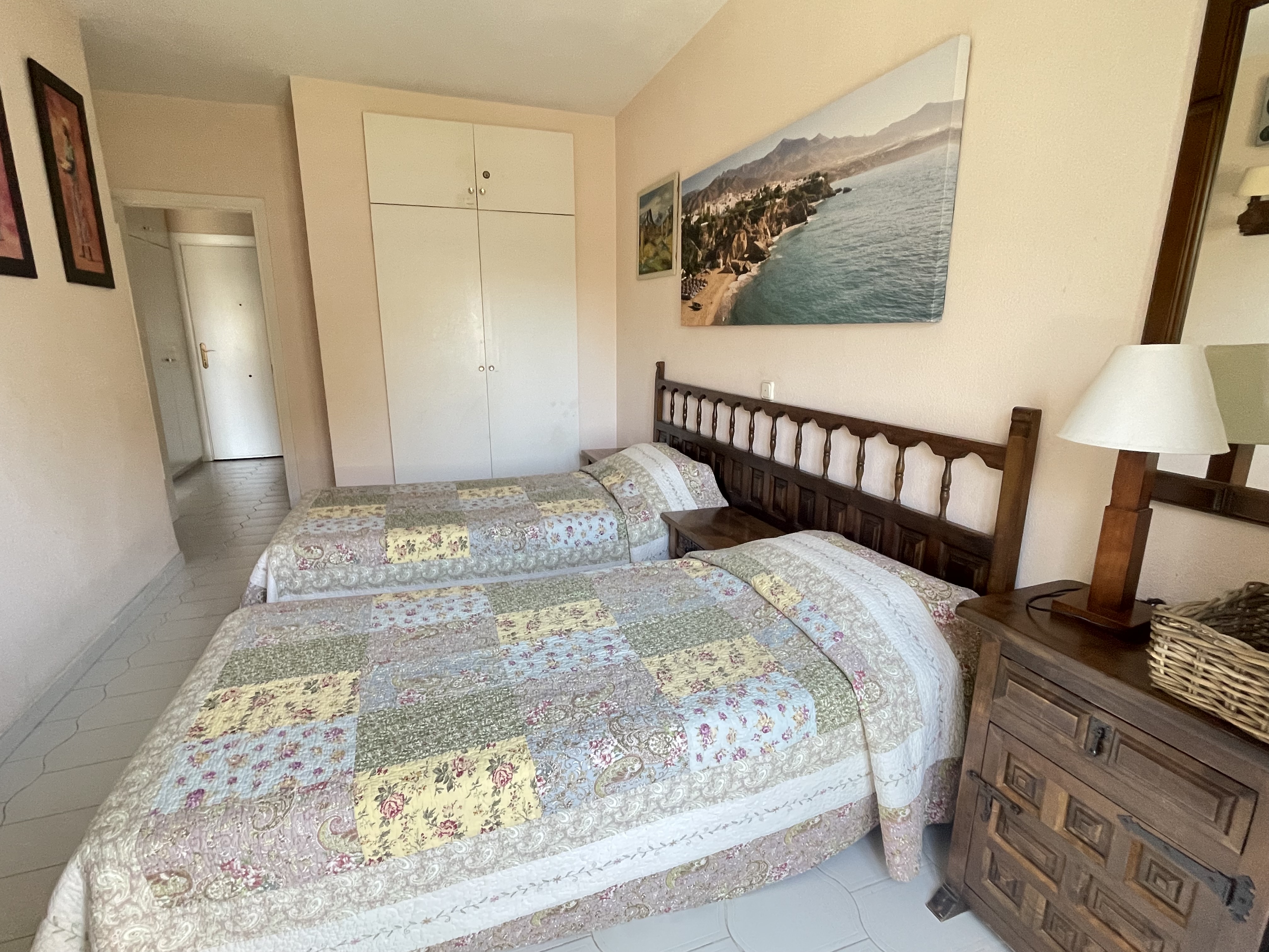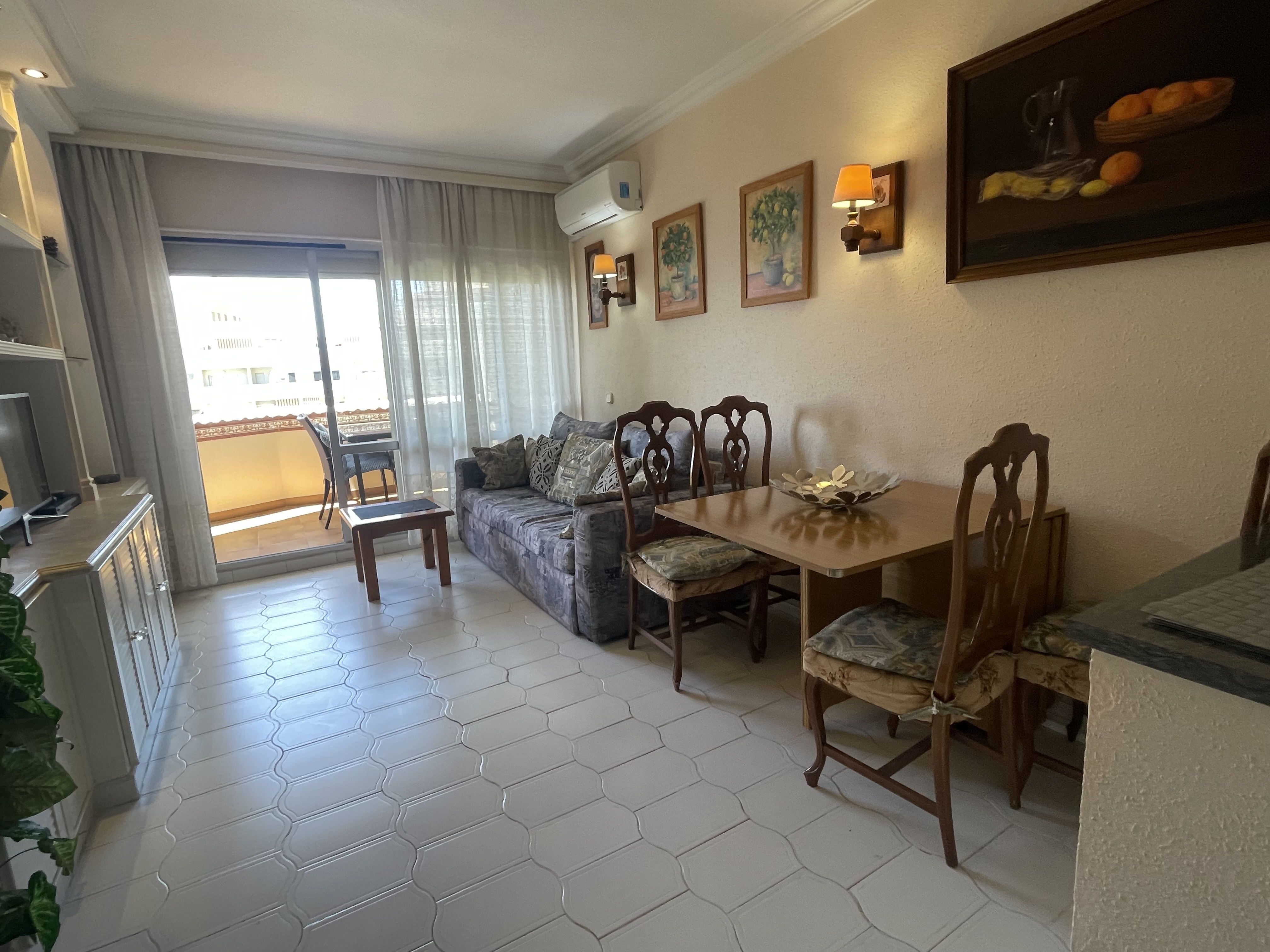 One bedroom apartment located on a fourth floor in the Benal Beach complex with west orientation, tropical gardens and sea views.