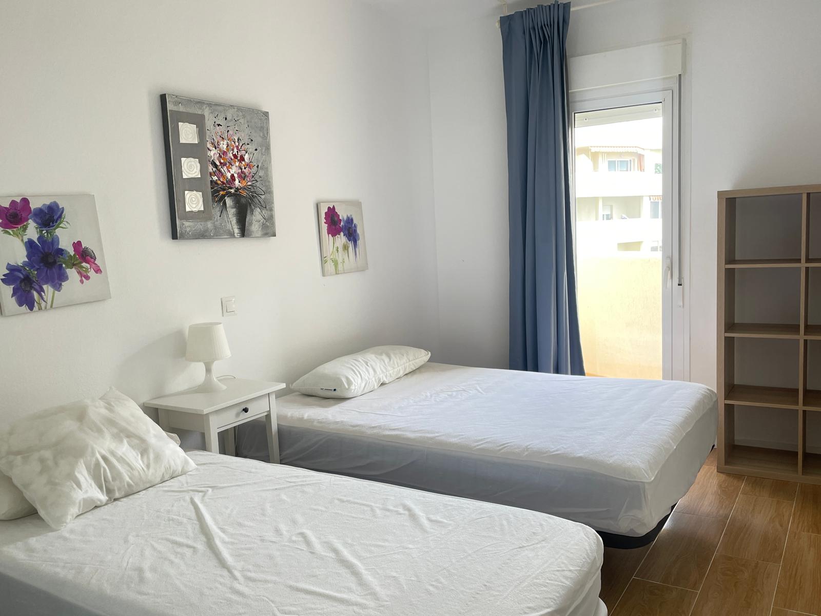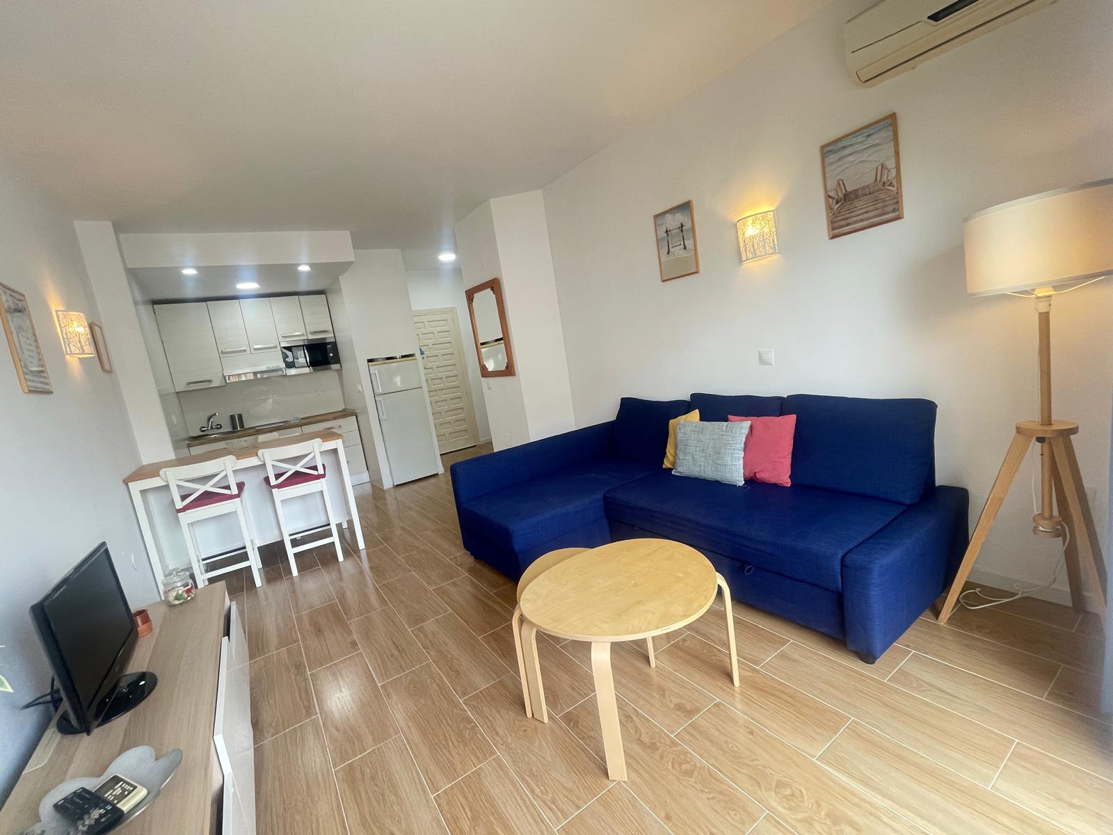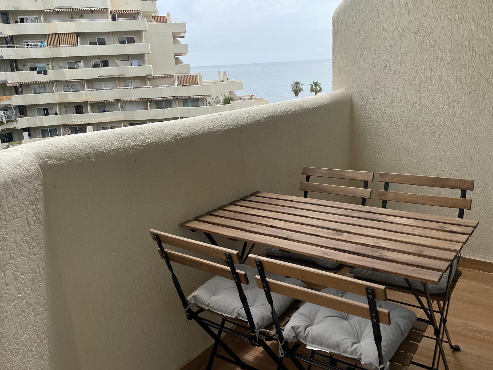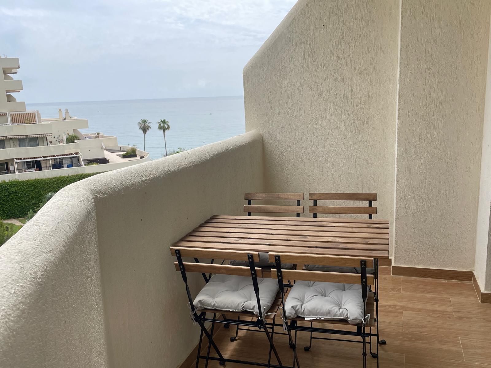 Completely renovated one-bedroom apartment located on the fourth floor of the BenalBeach Building with a terrace overlooking the sea and the complex's tropical gardens, facing southeast.