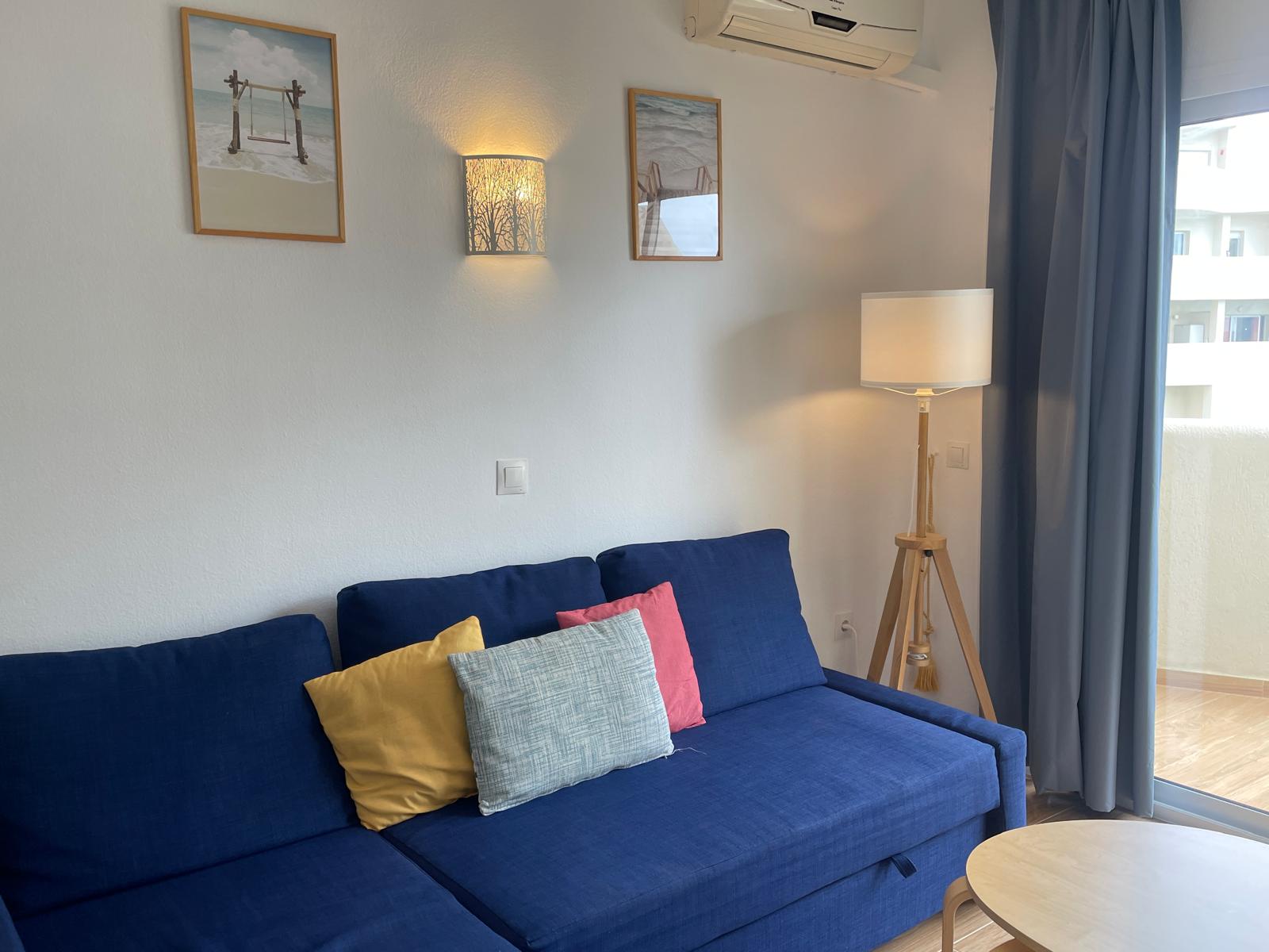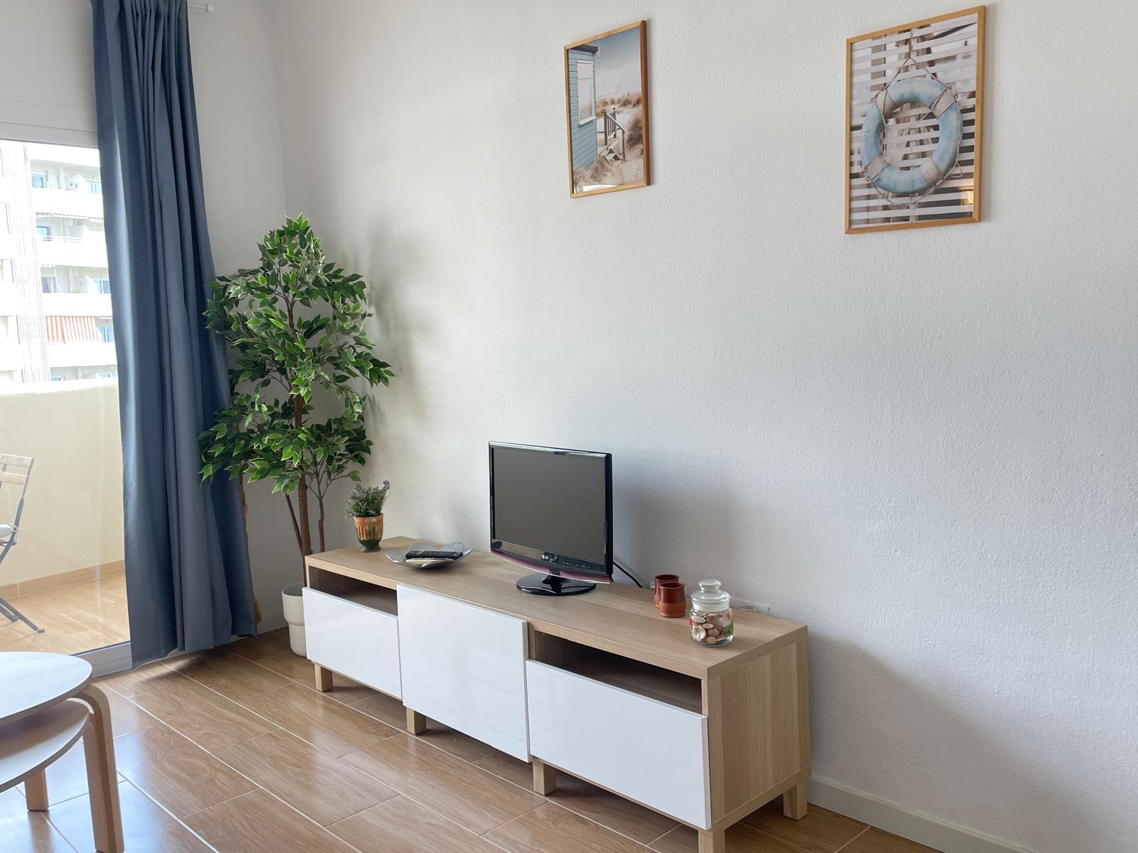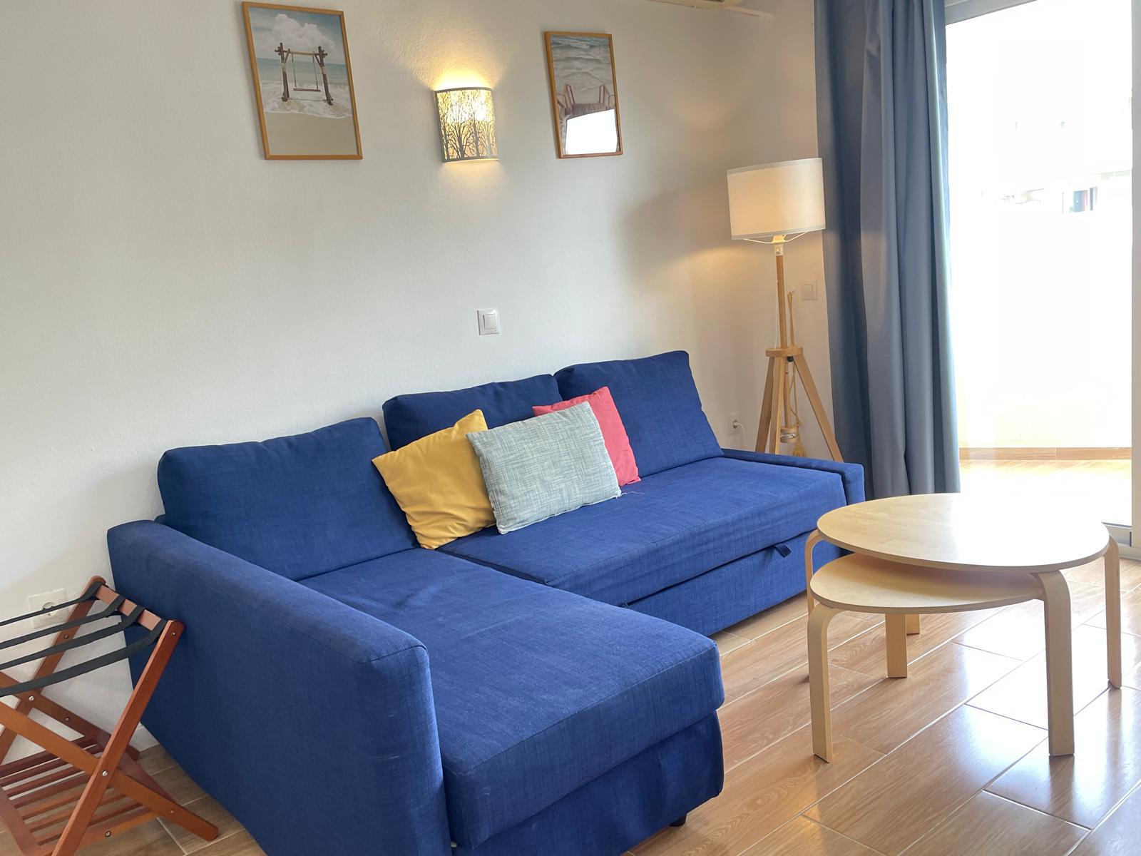 Completely renovated one-bedroom apartment located on the fourth floor of the BenalBeach Building with a terrace overlooking the sea and the complex's tropical gardens, facing southeast.