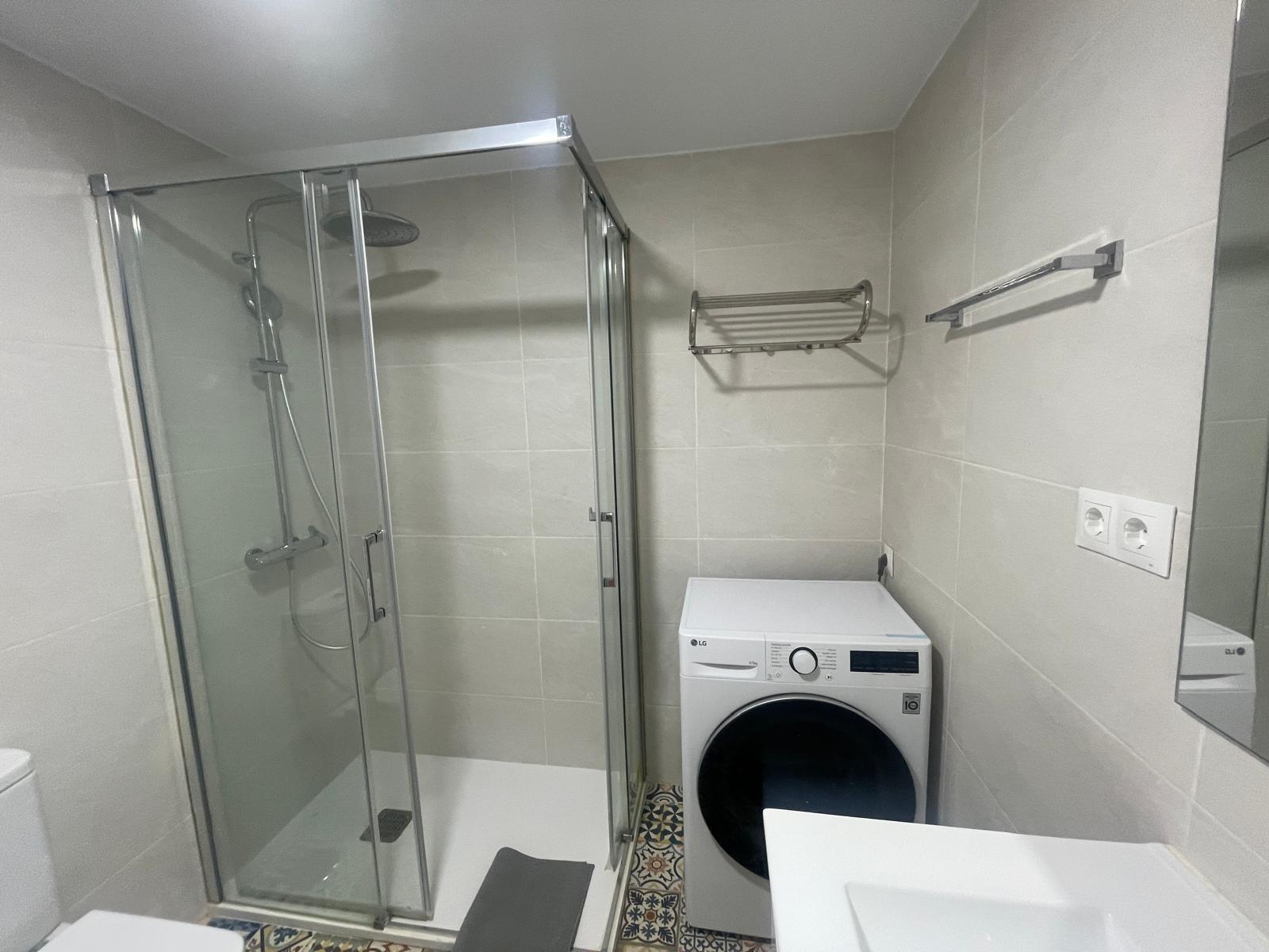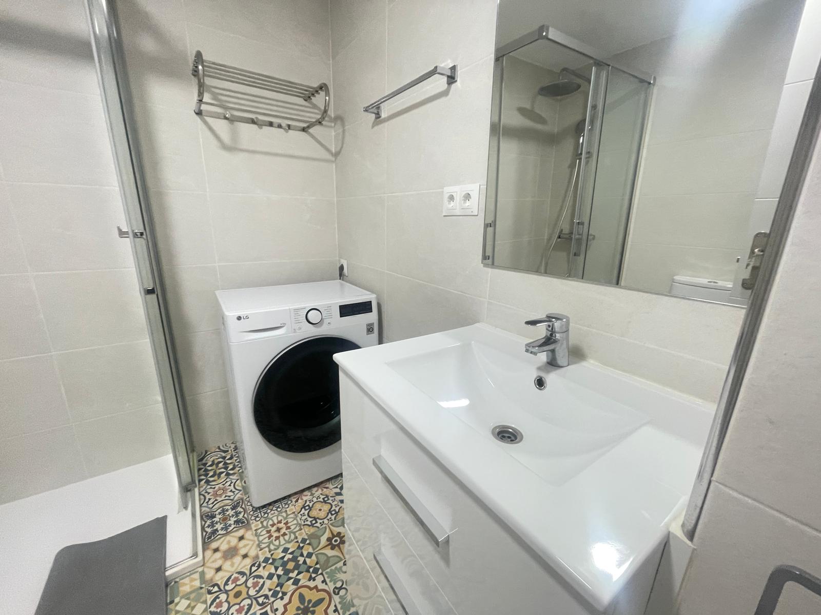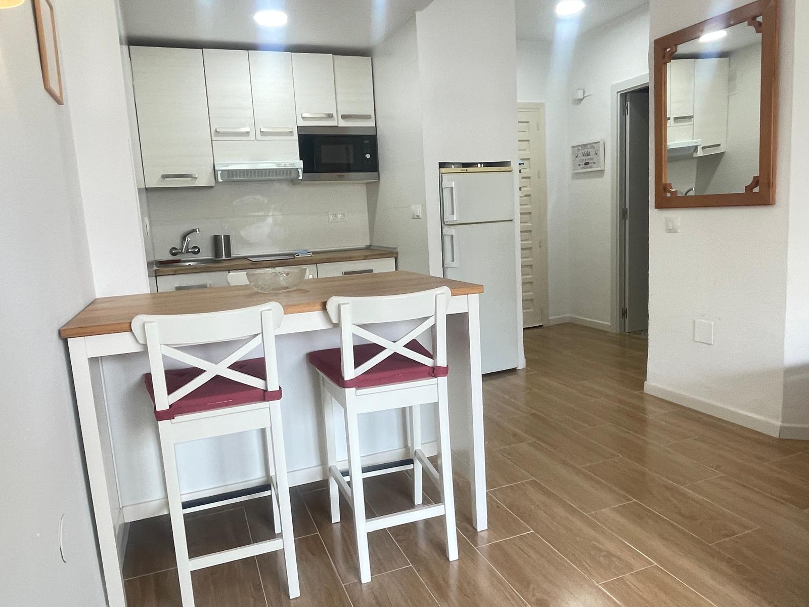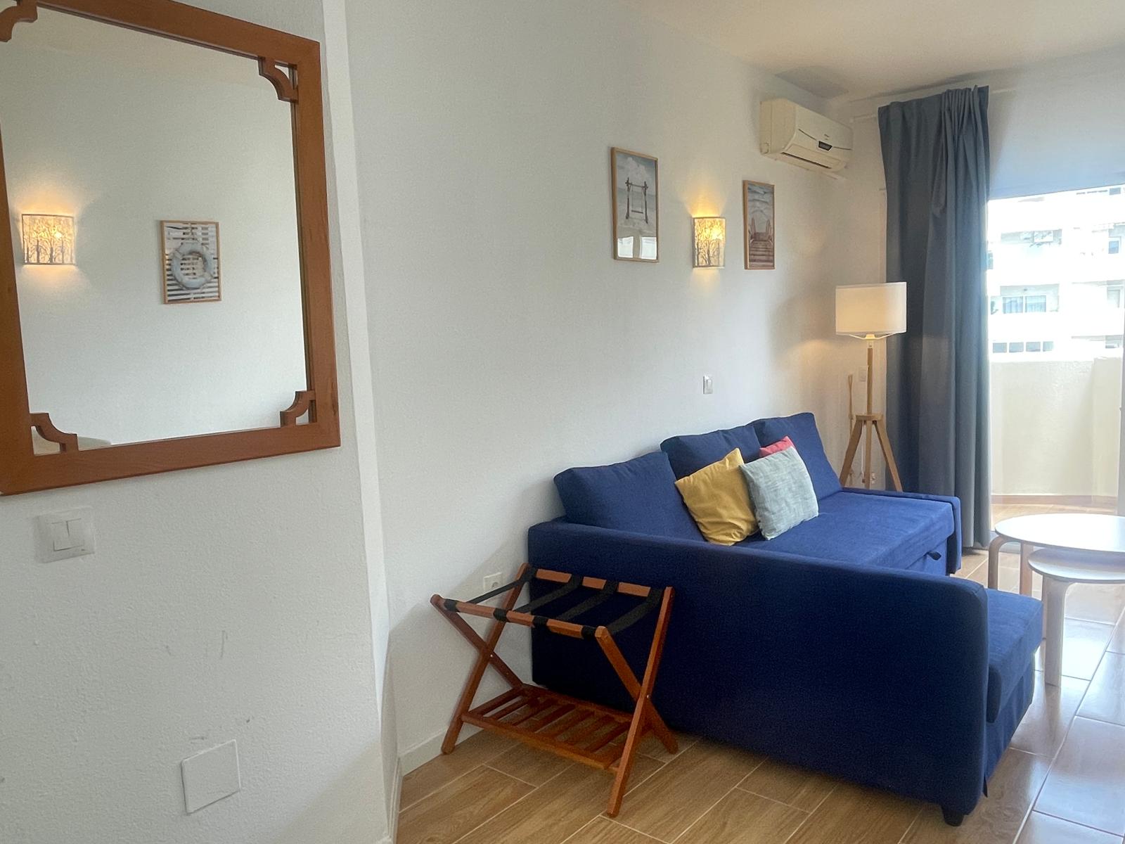 Completely renovated one-bedroom apartment located on the fourth floor of the BenalBeach Building with a terrace overlooking the sea and the complex's tropical gardens, facing southeast.
