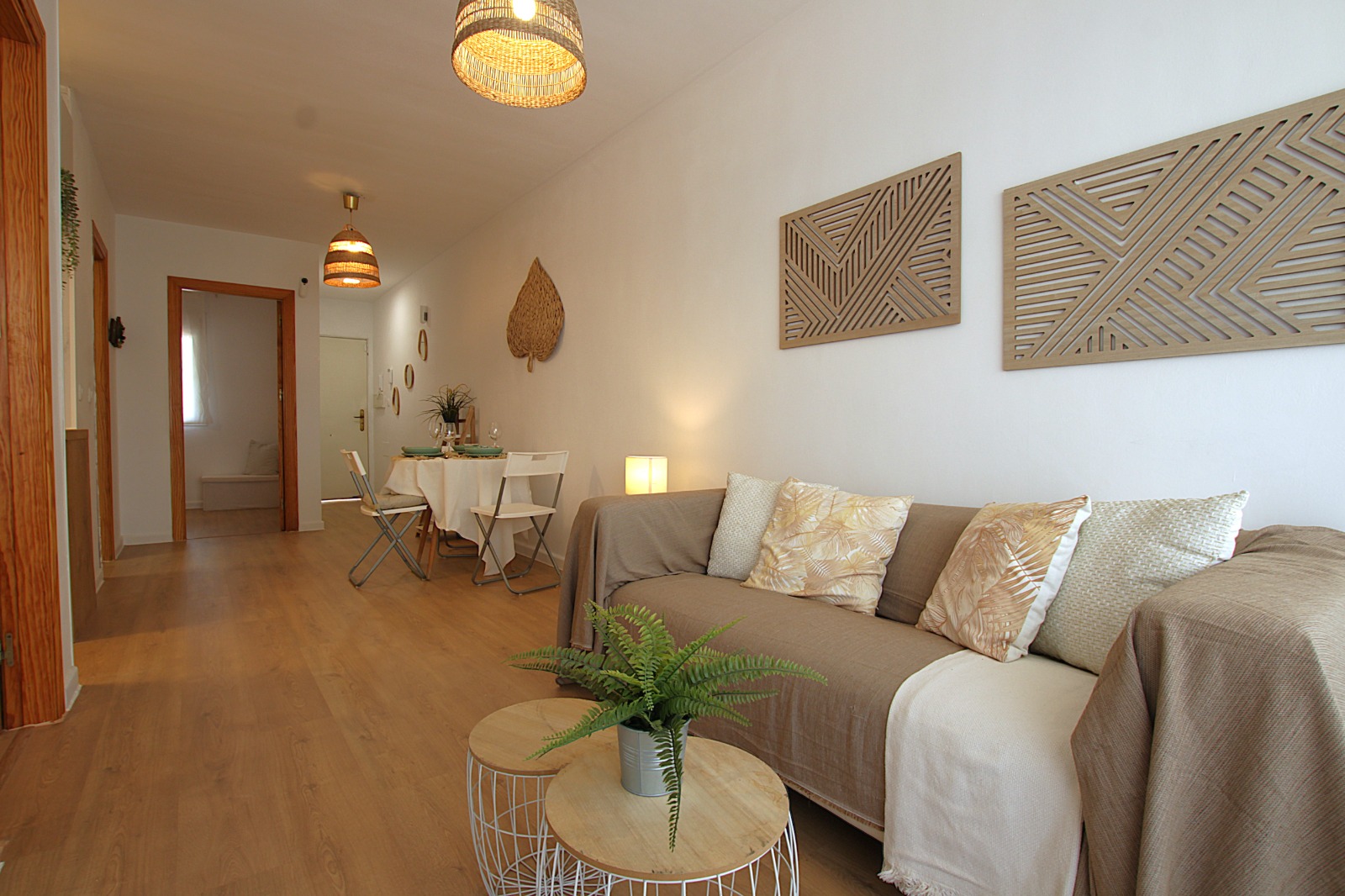 The apartment has a well-utilized surface area of 55 m2 with 2 bedrooms, 1 bathroom, a living-dining room, and a kitchen, distributed in a functional and bright space. Its terrace with sea views is ideal for enjoying the Mediterranean climate year-round. It boasts natural light, thanks to its excellent orientation and large windows.