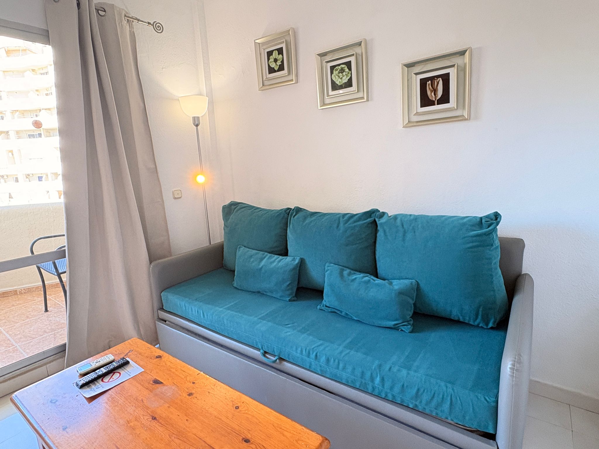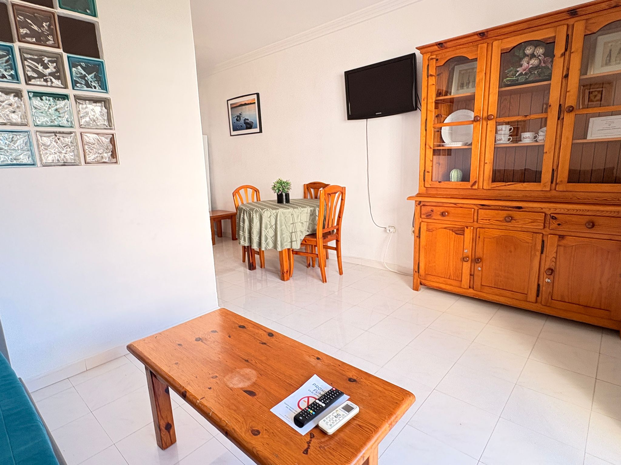 Dispone de dormitorio interior en salón con cama de matrimonio, salón con sofá cama para lavadora, TV 32" y aire acondicionado.