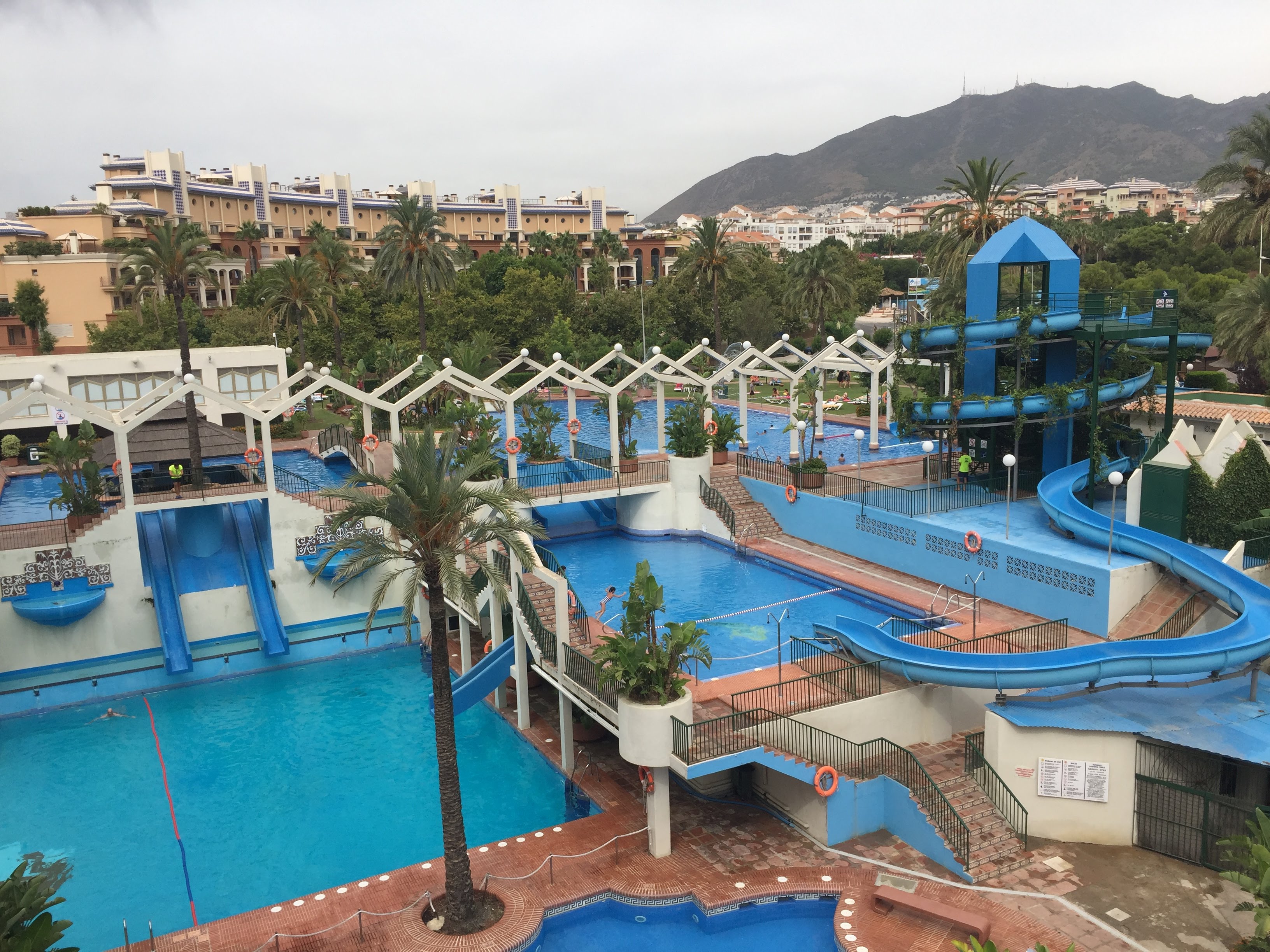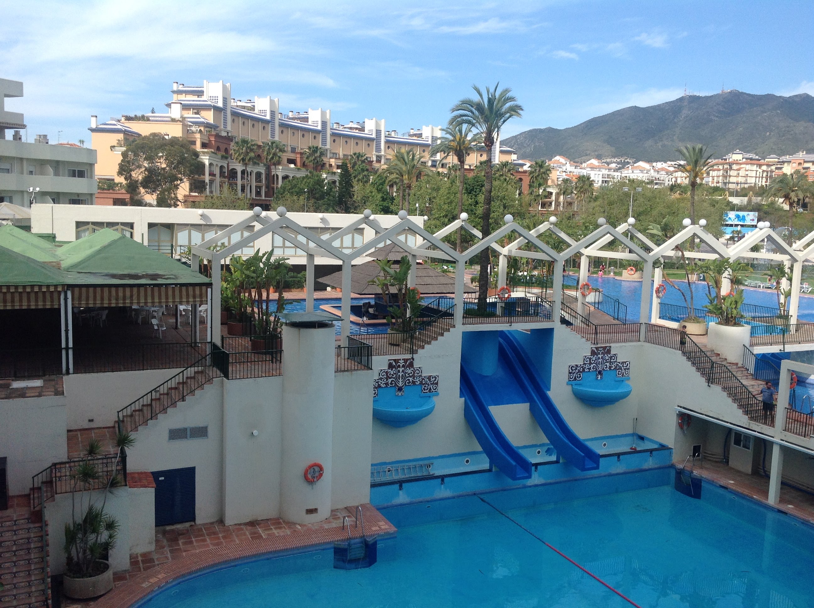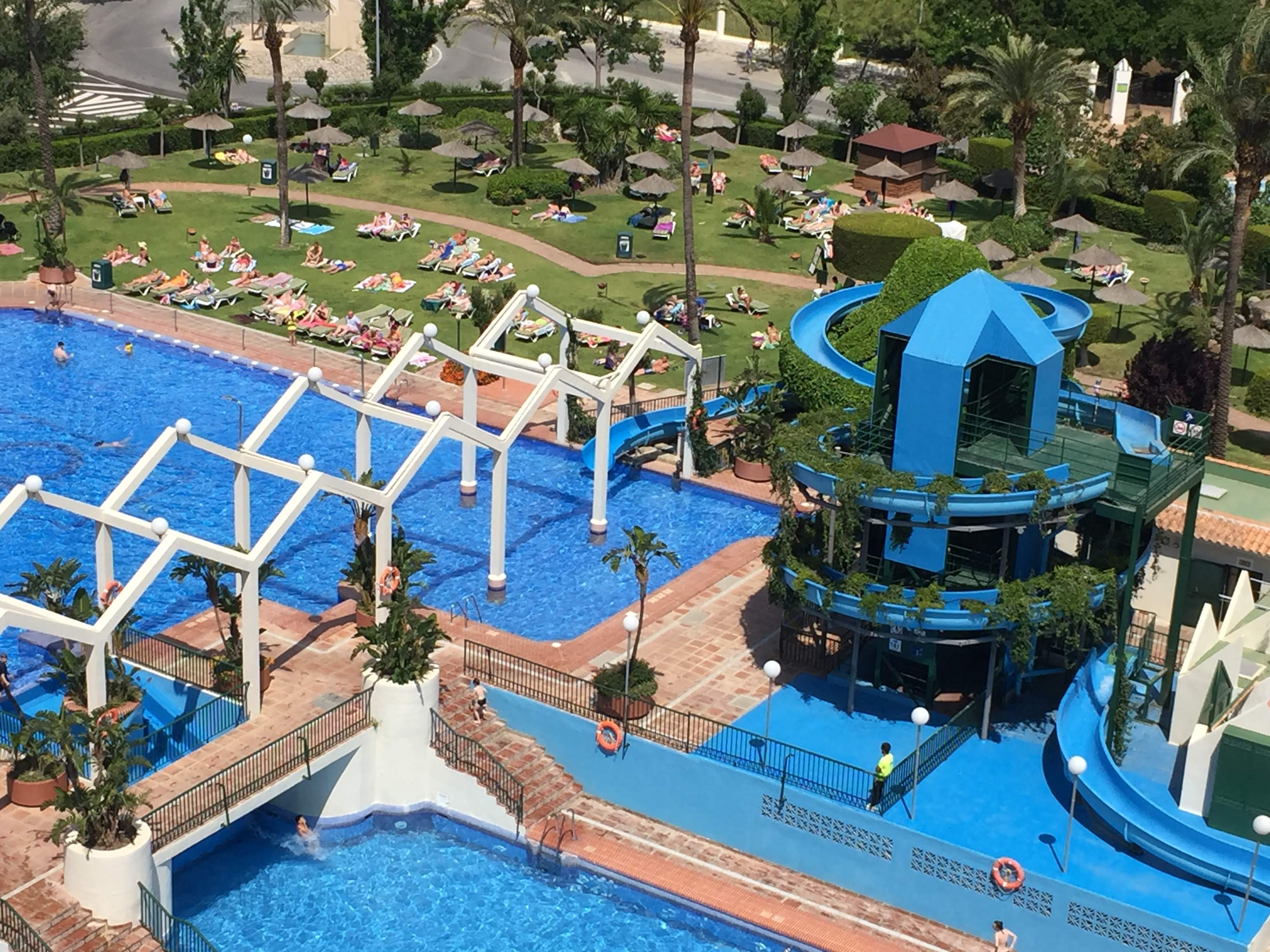Dentro del complejo encontrará cafetería, restaurante, supermercado y gimnasio, así como uno de los conjuntos de piscinas comunitarias más impresionantes de la Costa del Sol con cuatro piscinas con toboganes, una de ellas climatizadas. Socorristas y control de acceso durante todo el año.