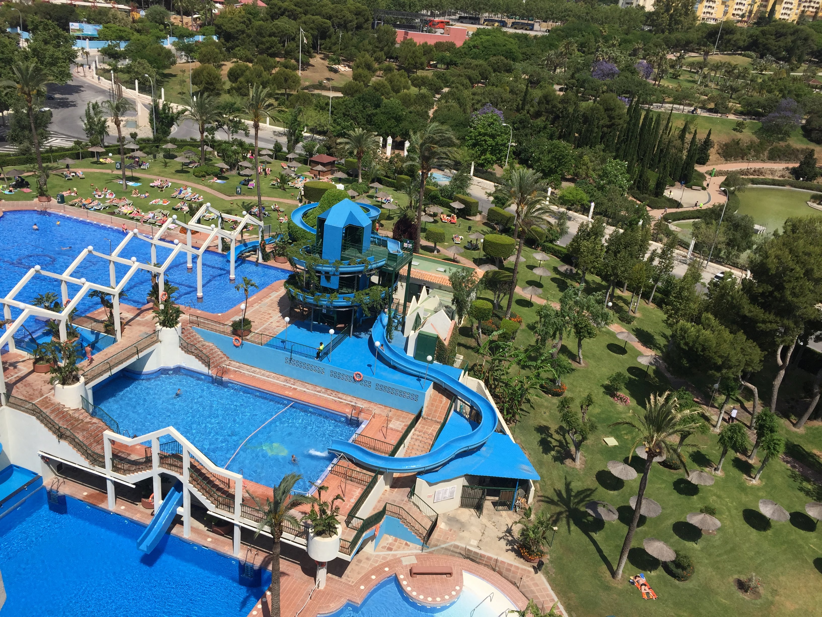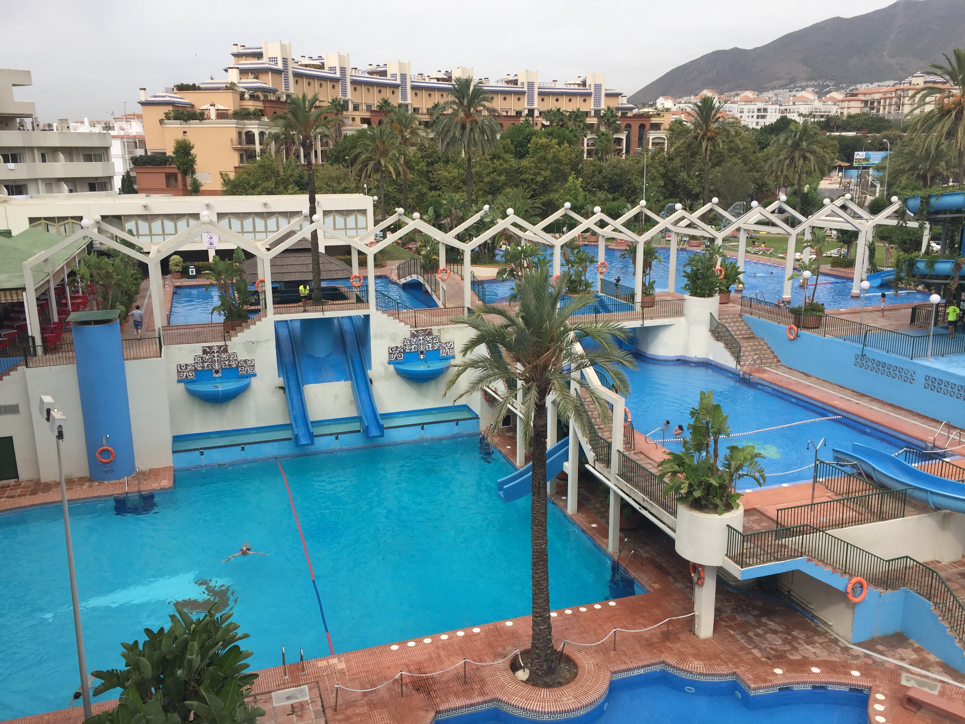 Dentro del complejo encontrará cafetería, restaurante, supermercado y gimnasio, así como uno de los conjuntos de piscinas comunitarias más impresionantes de la Costa del Sol con cuatro piscinas con toboganes, una de ellas climatizadas. Socorristas y control de acceso.